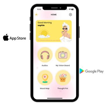 Everything you need right here at your finger tips... Download the Haute Hypnosis App and get access to various powerful healing audios, soothing meditation music, and design your own virtual vision board. By using the app for just 5 minutes each day, you can improve relationships, de-stress, shift to a positive mindset, increase confi